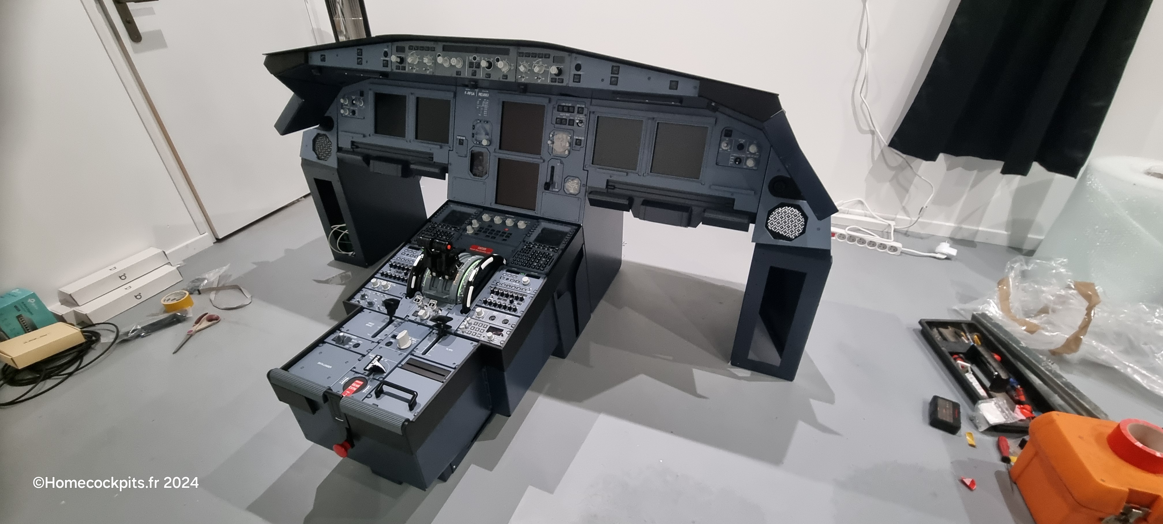 Notre setup comprends donc un pedestal complet, un ensemble MIP / Glareshield et un Overhead et sa structure porteuse.
